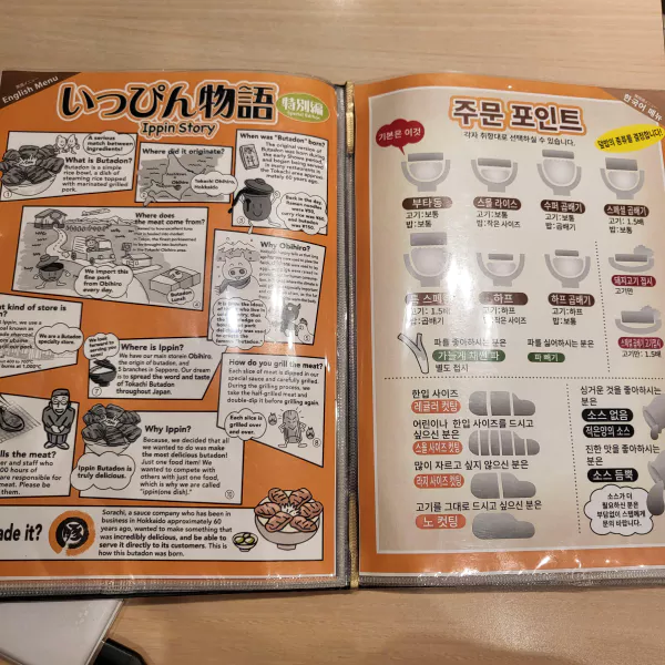 잇핀 역시 한국인들에게 엄청 인기 있는 곳이라 한국어메뉴판 준비되어 있어요!